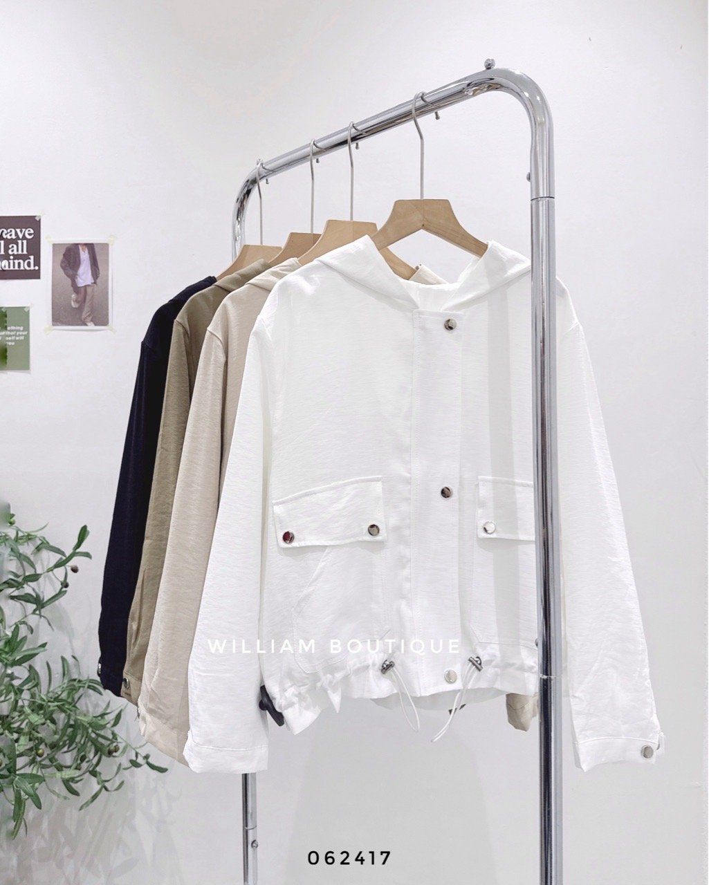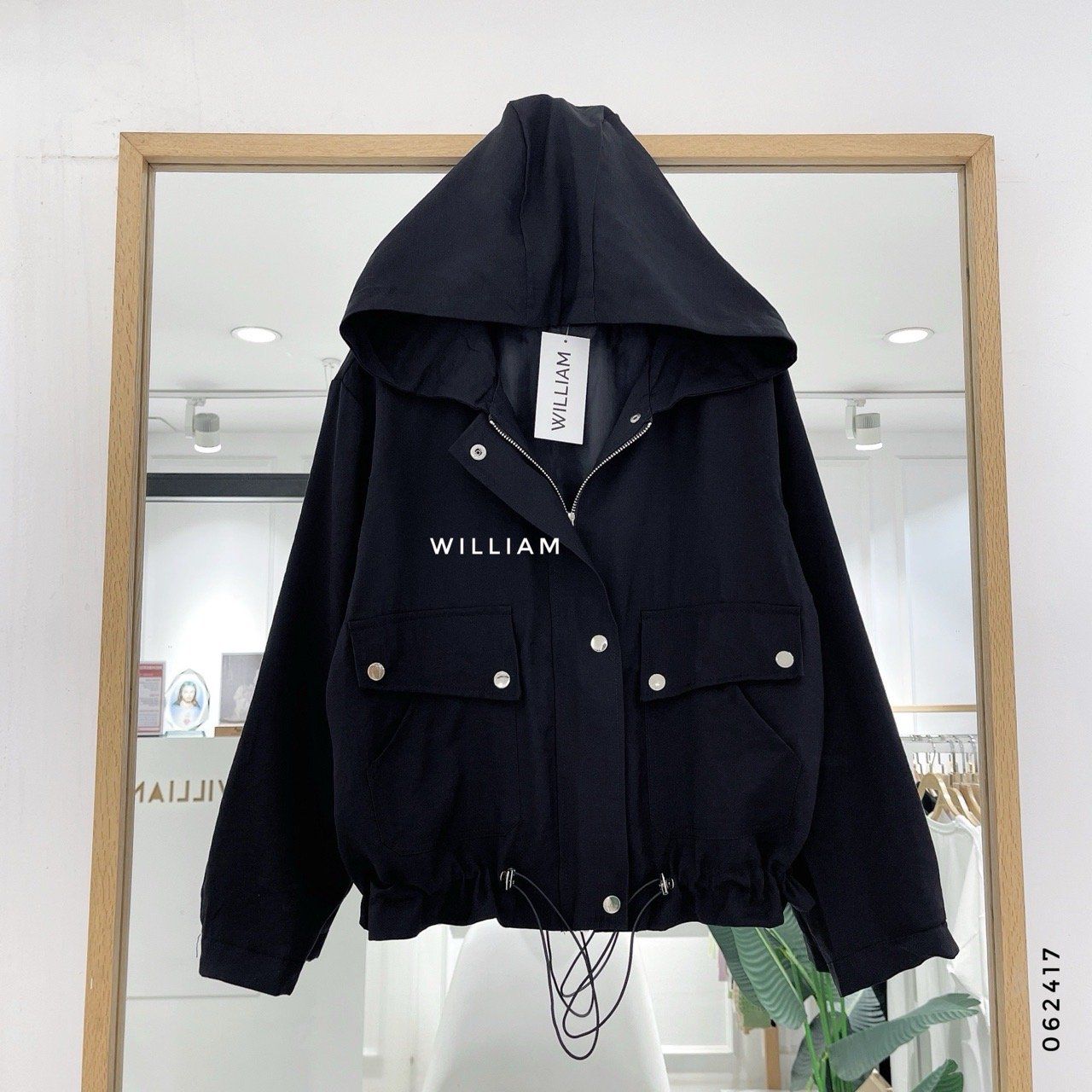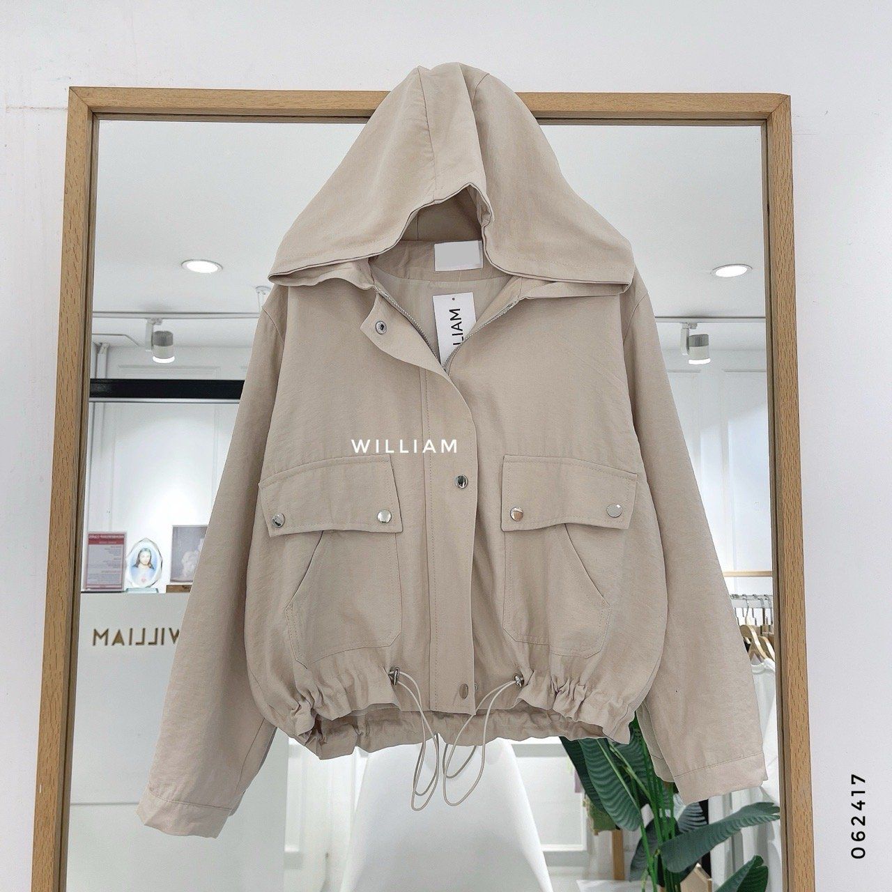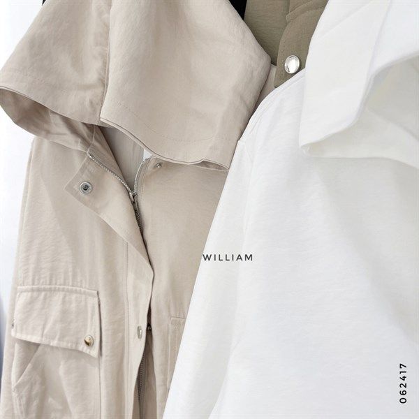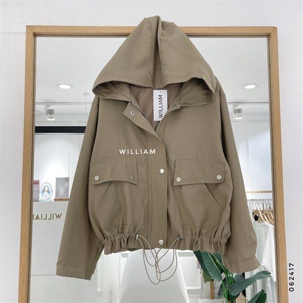 Áo khoác nón rút eo nút bấm 8809