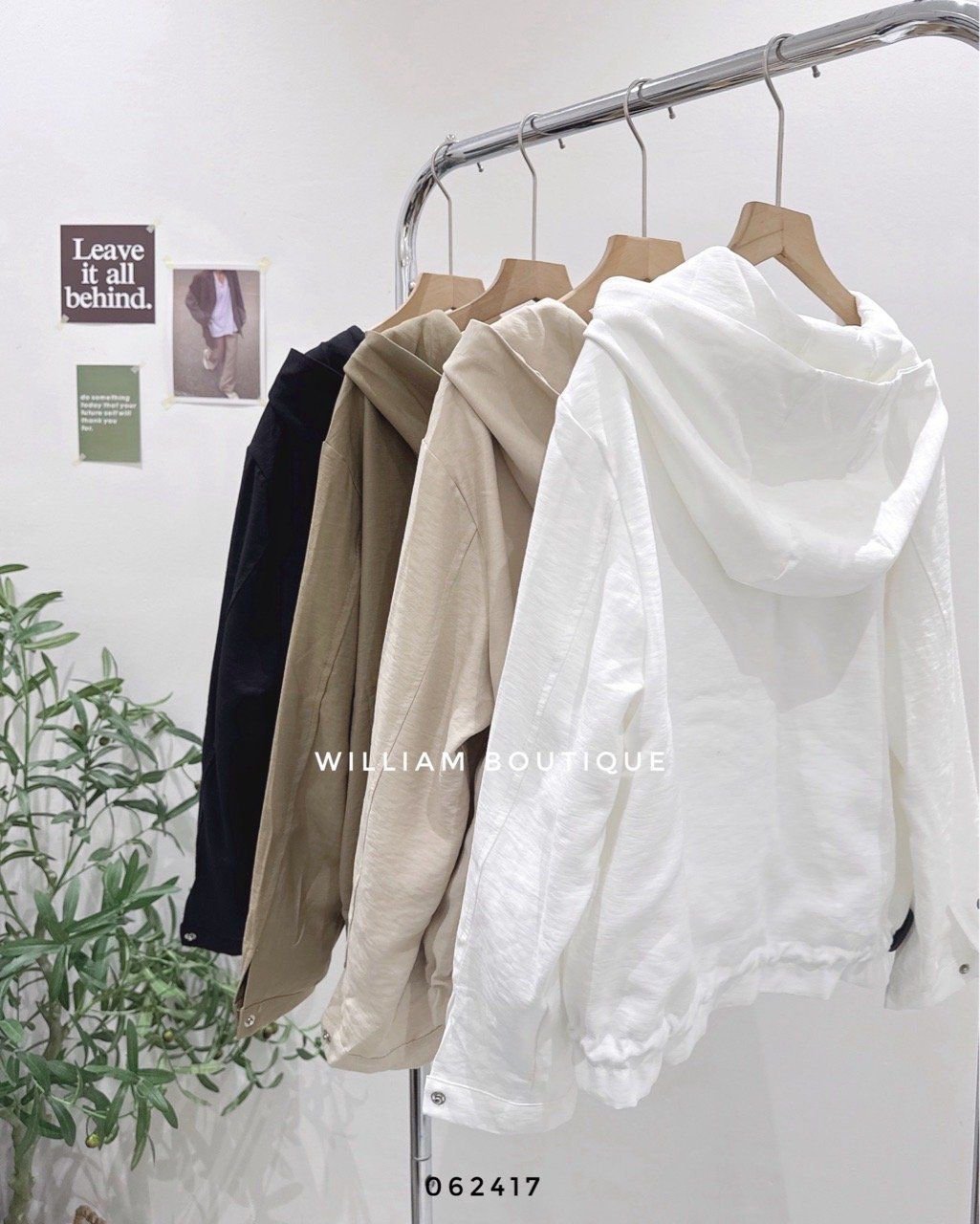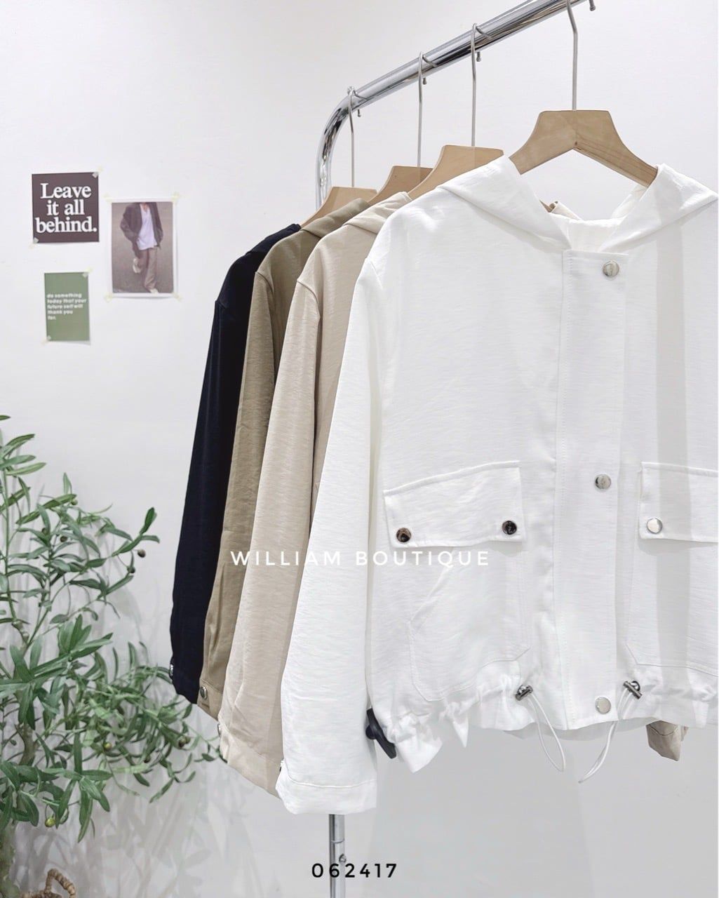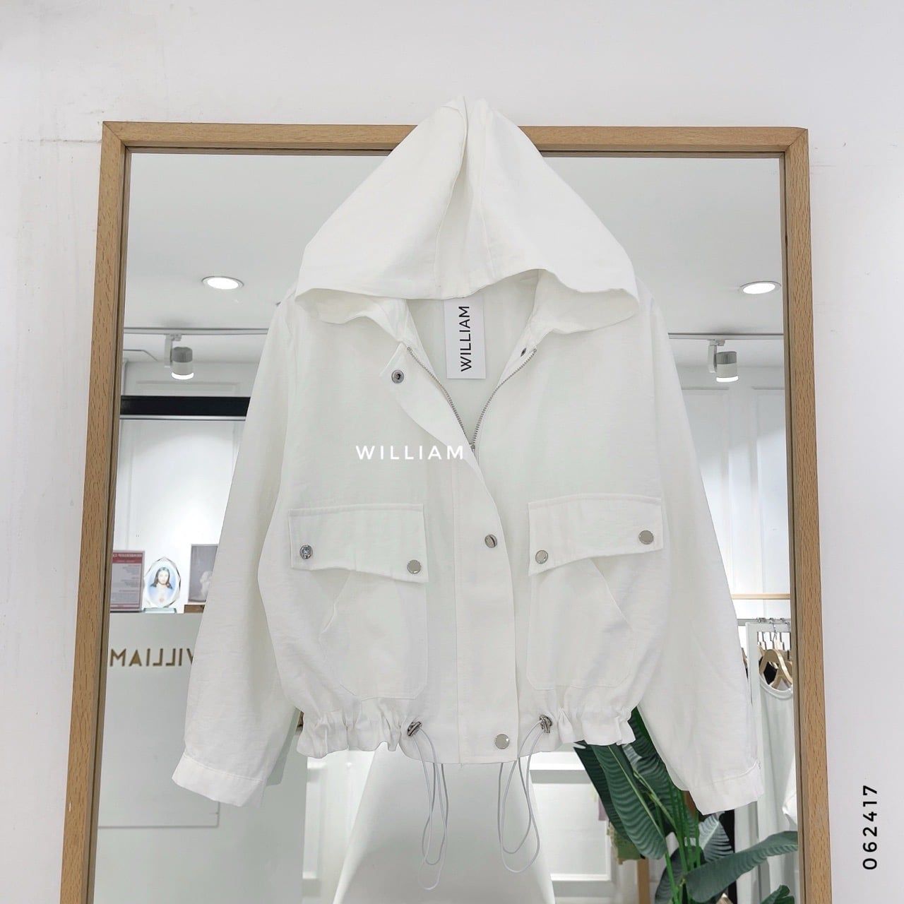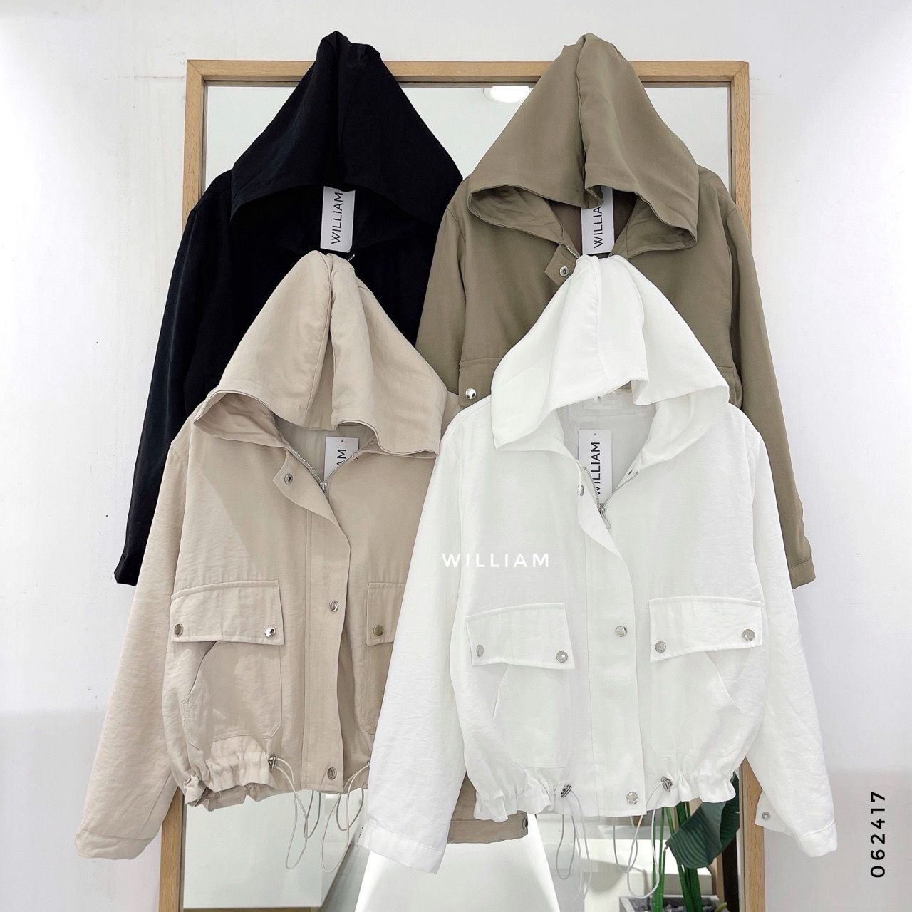 Áo khoác nón rút eo nút bấm 8809