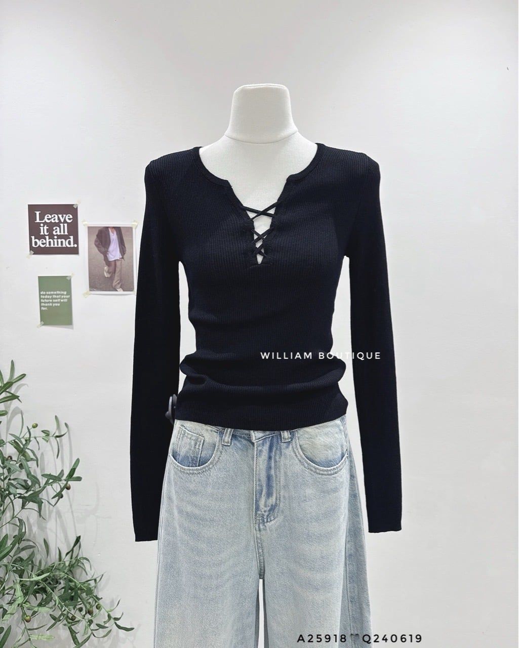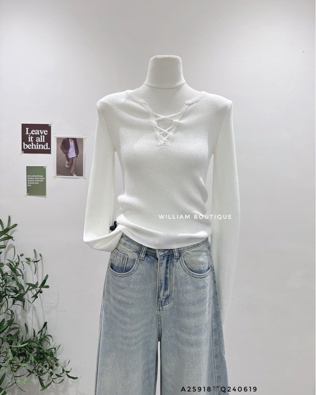 Áo len ôm tay dài đan dây 6831