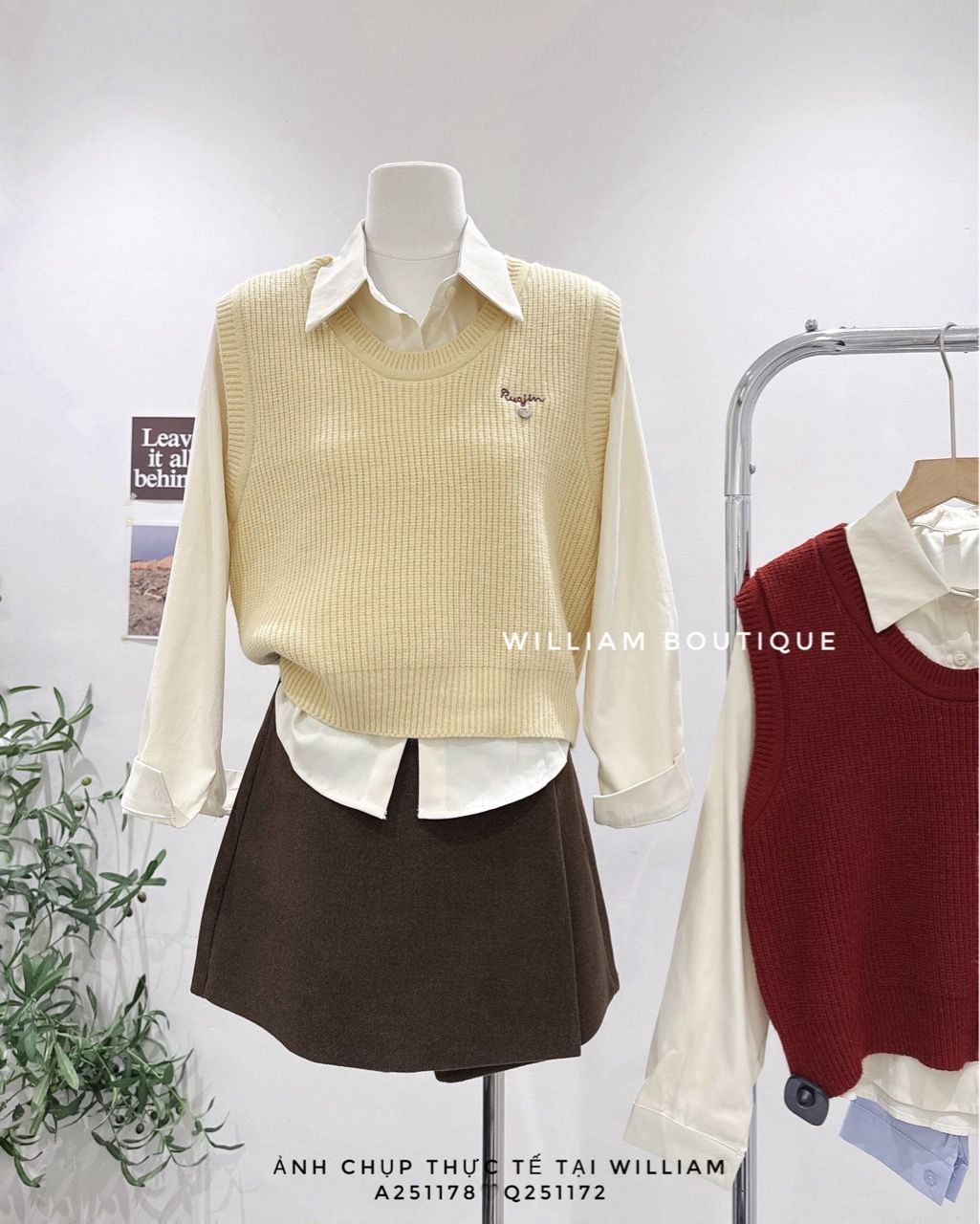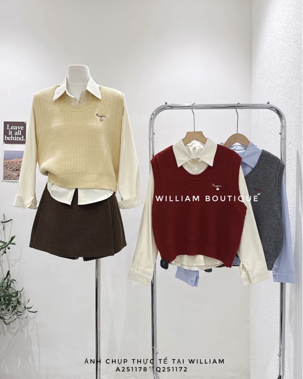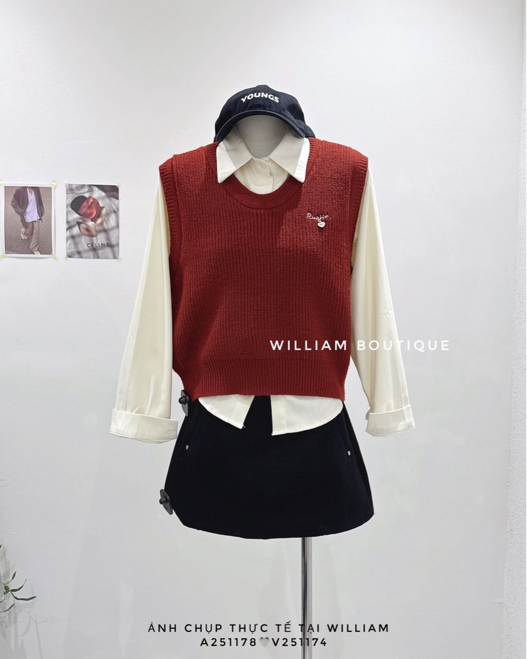 Áo sơ mi + gile len cổ tròn 7223