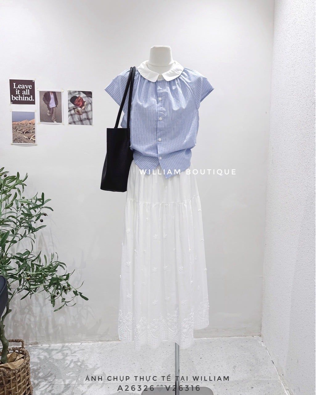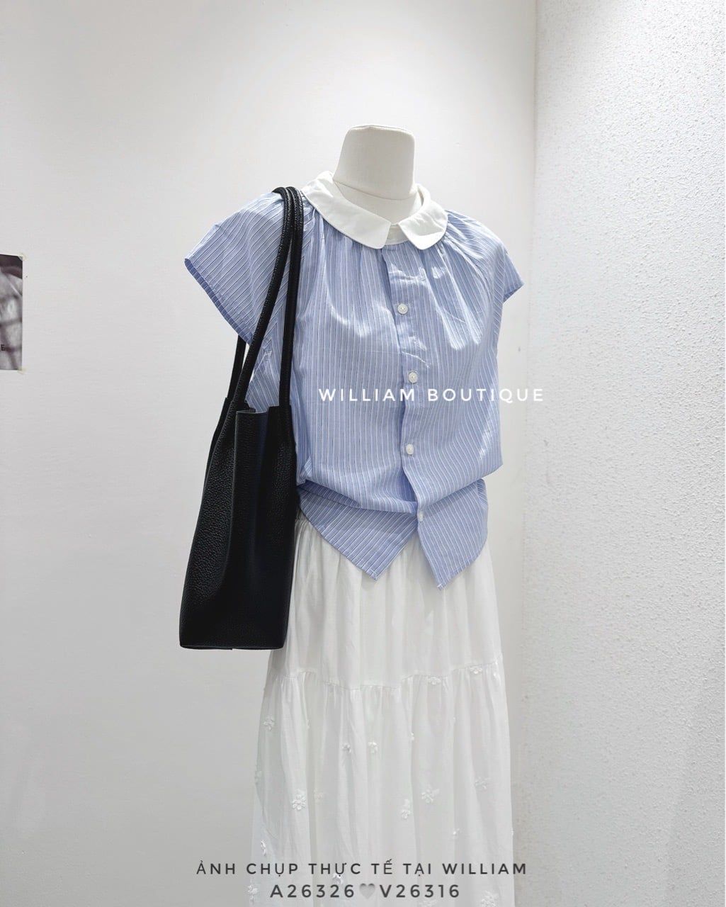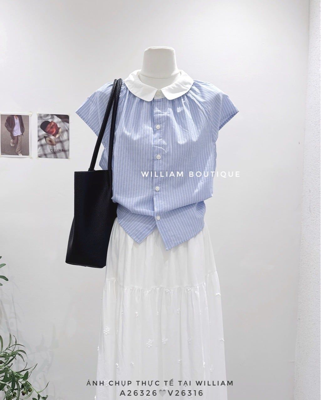 Áo sơ mi sọc tay hến cổ trắng 6326