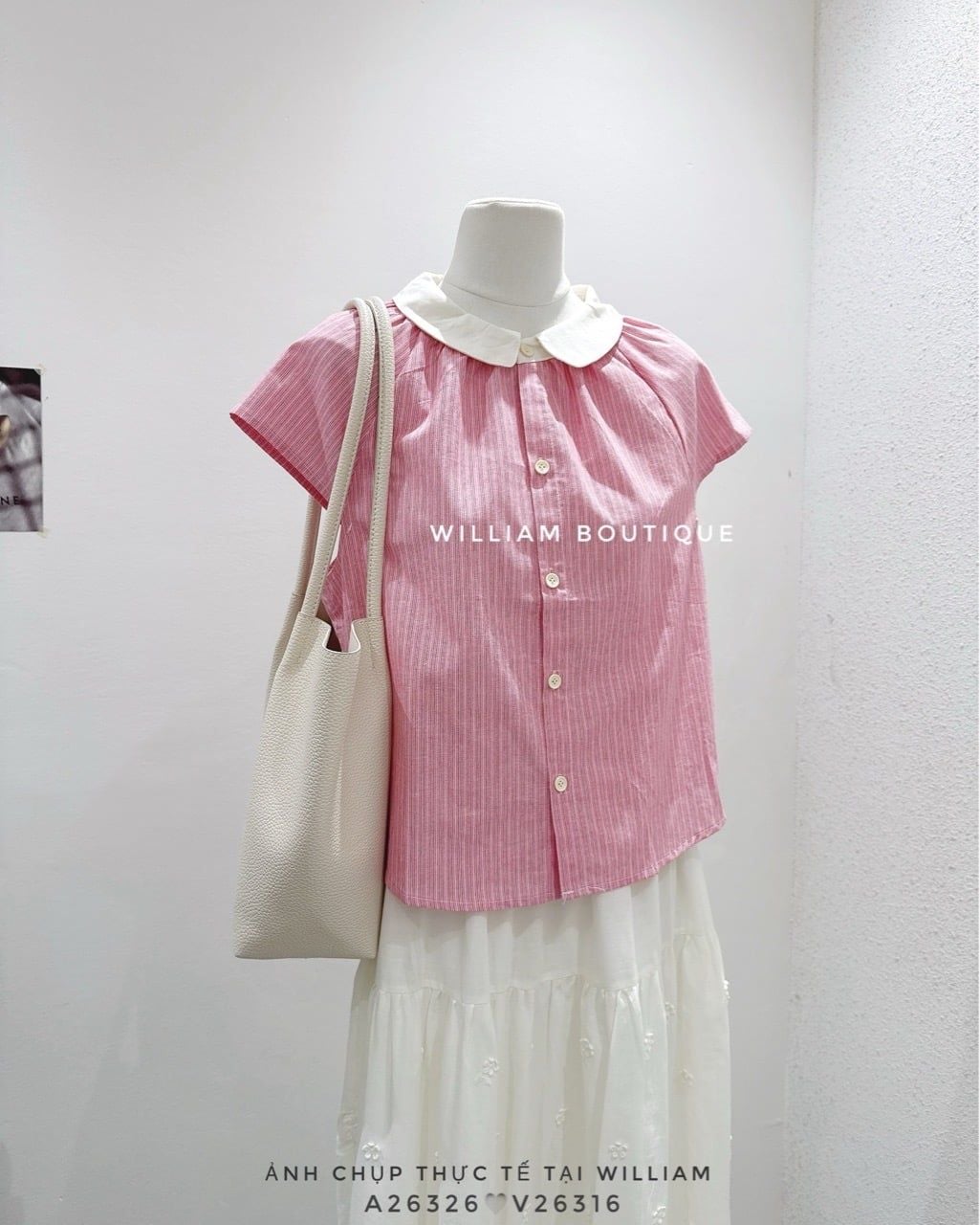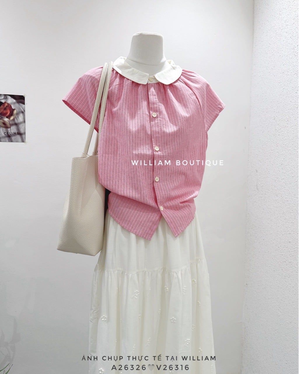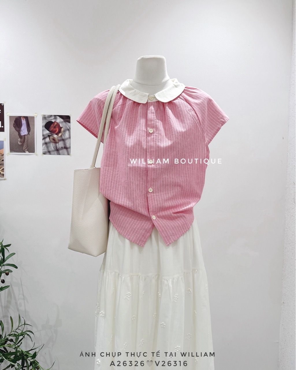 Áo sơ mi sọc tay hến cổ trắng 6326