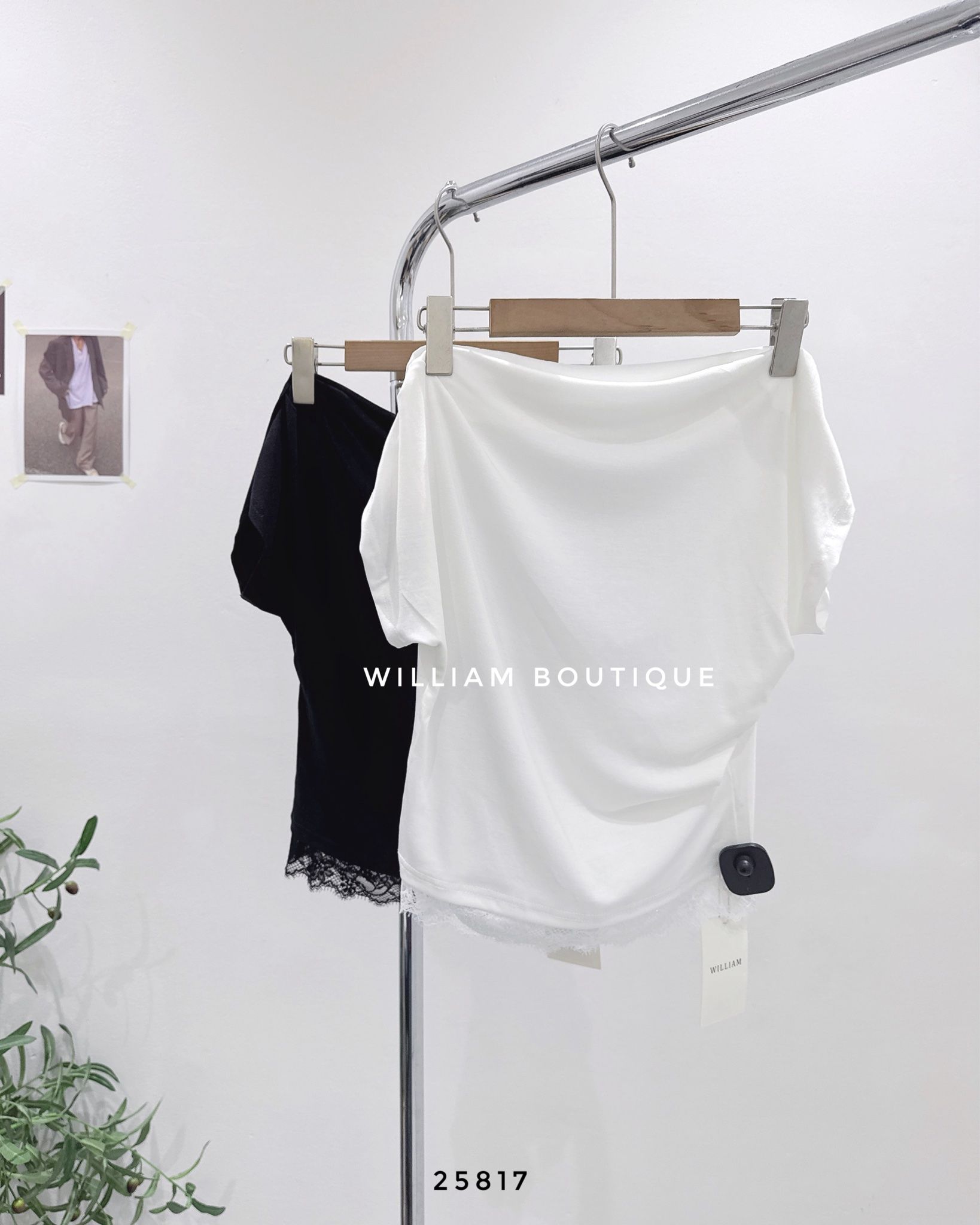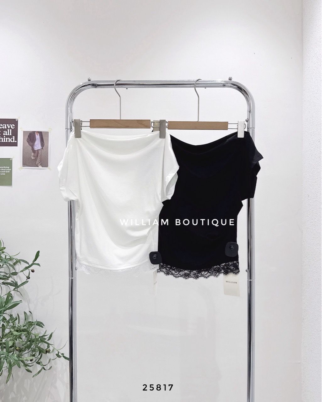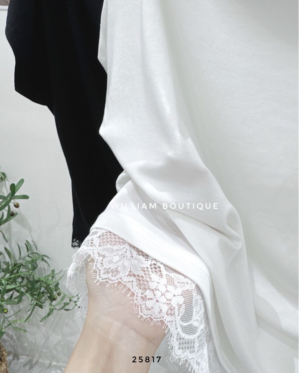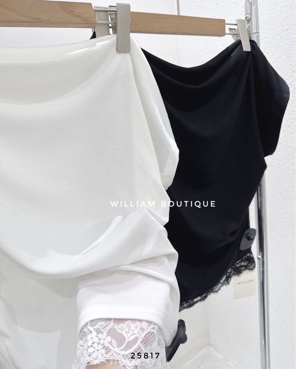 Áo thun trễ vai phối ren 6561