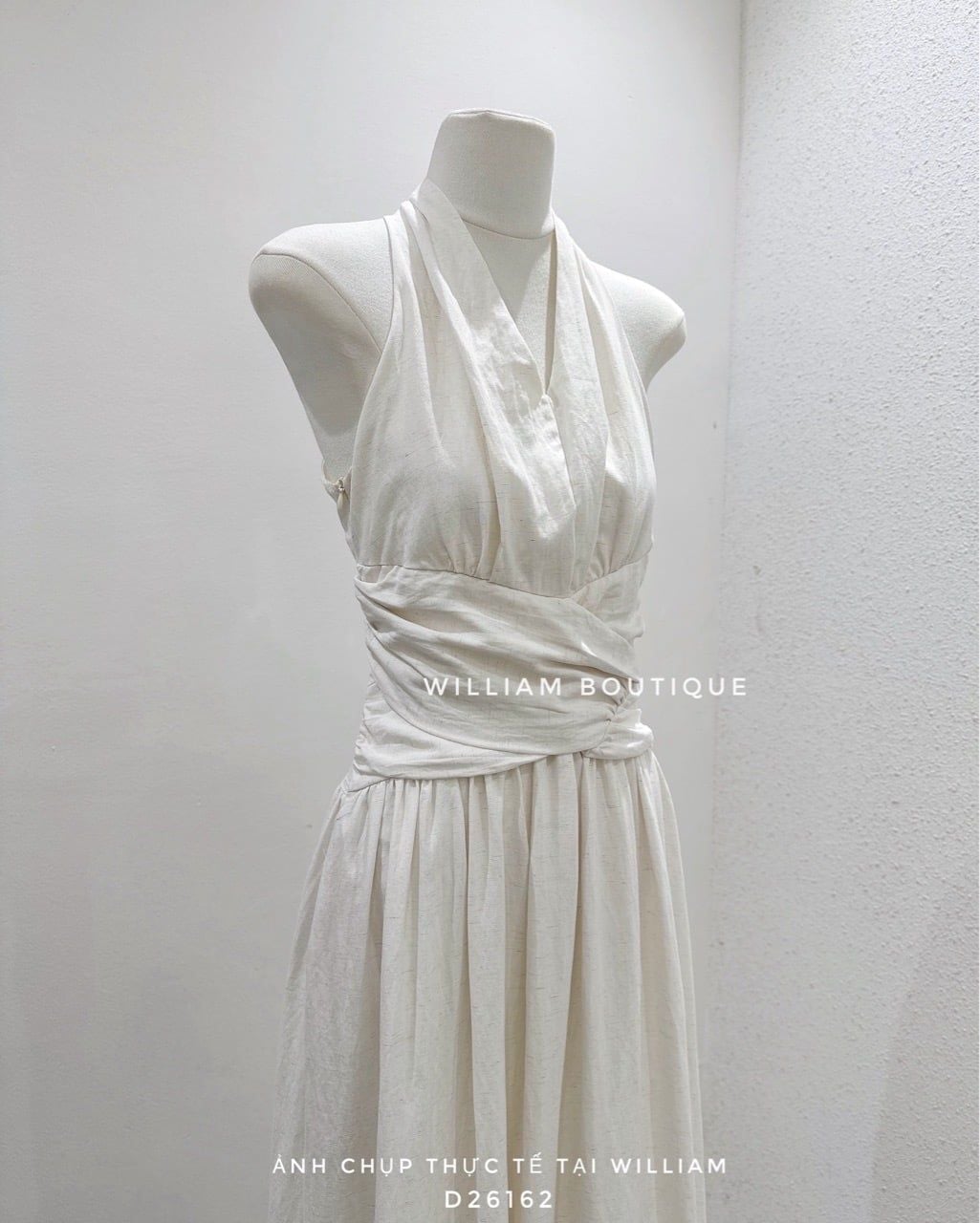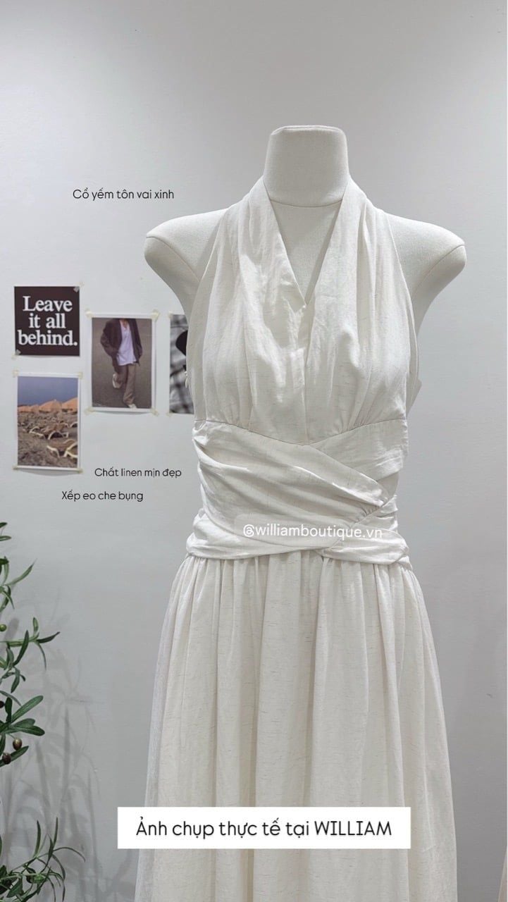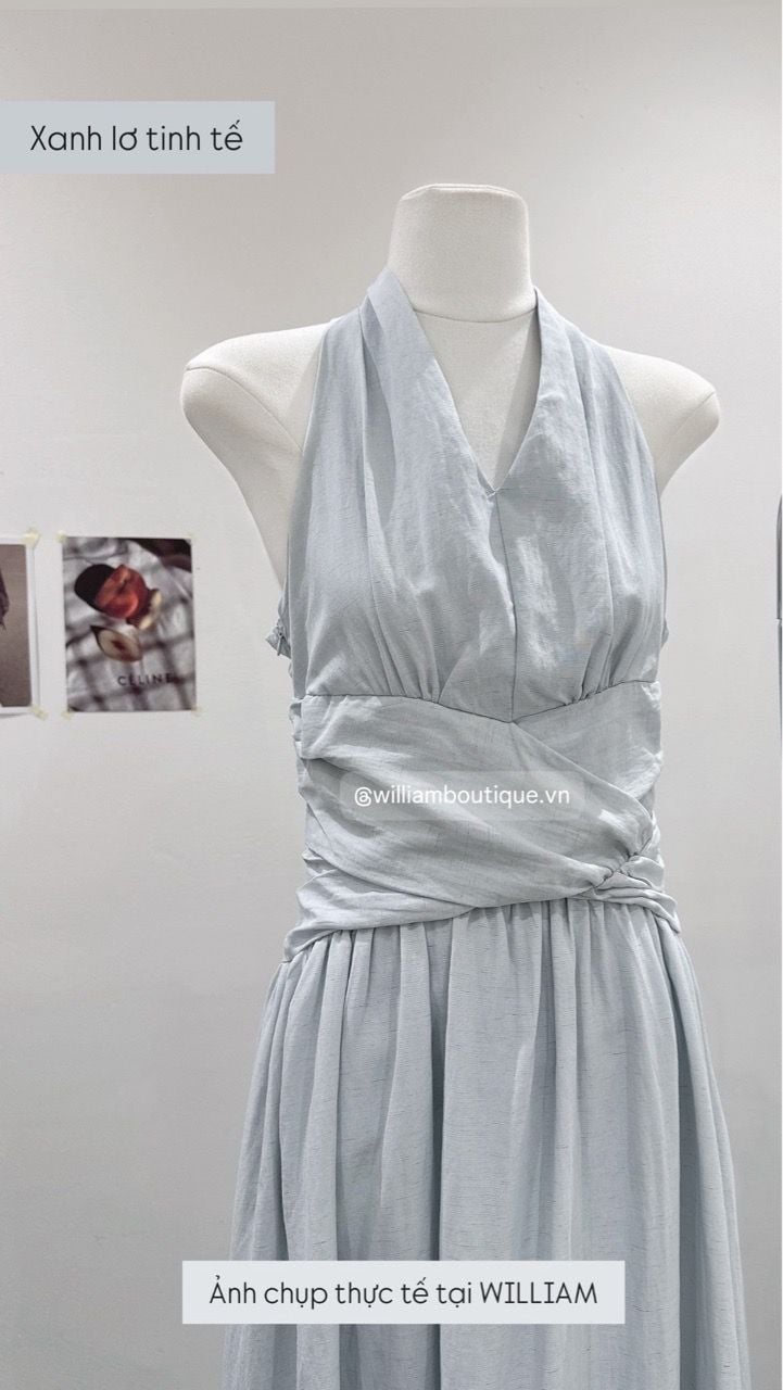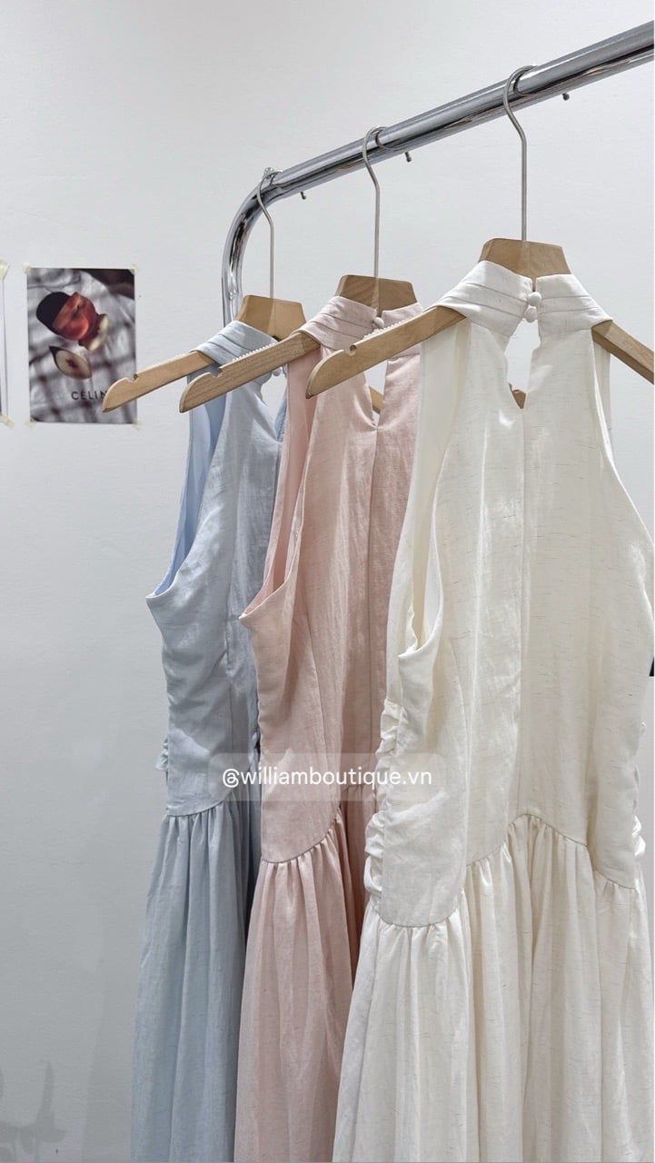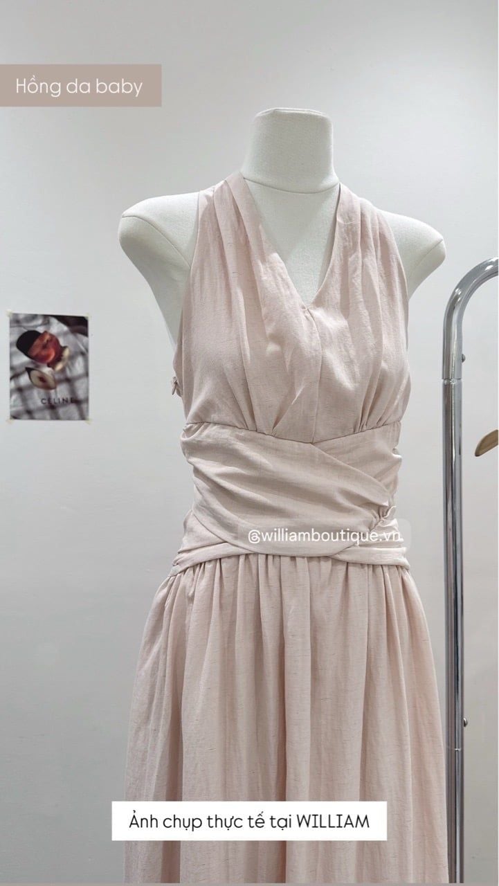 Đầm cổ V xếp eo linen 2529