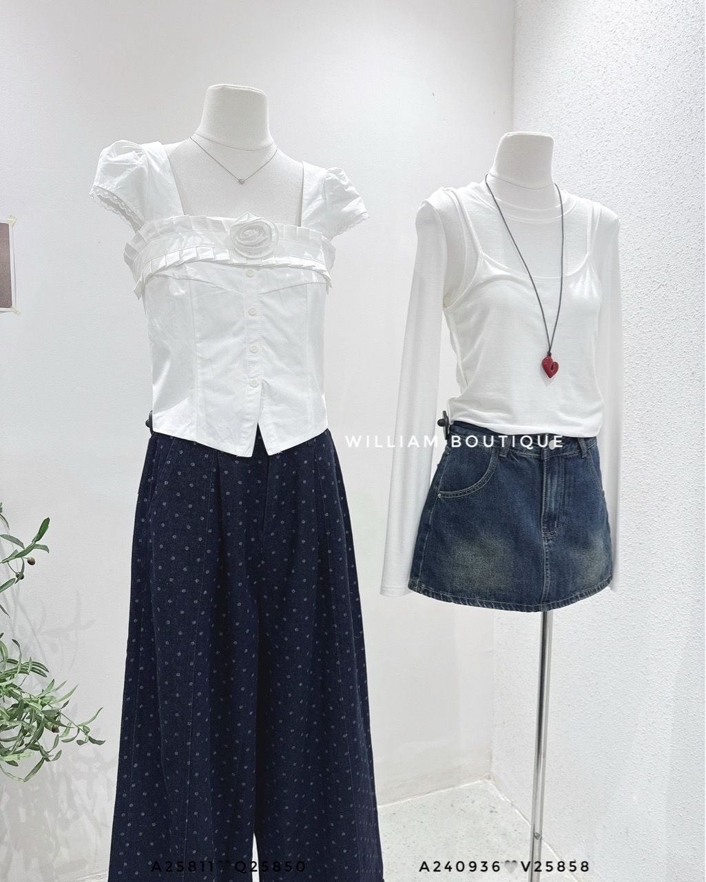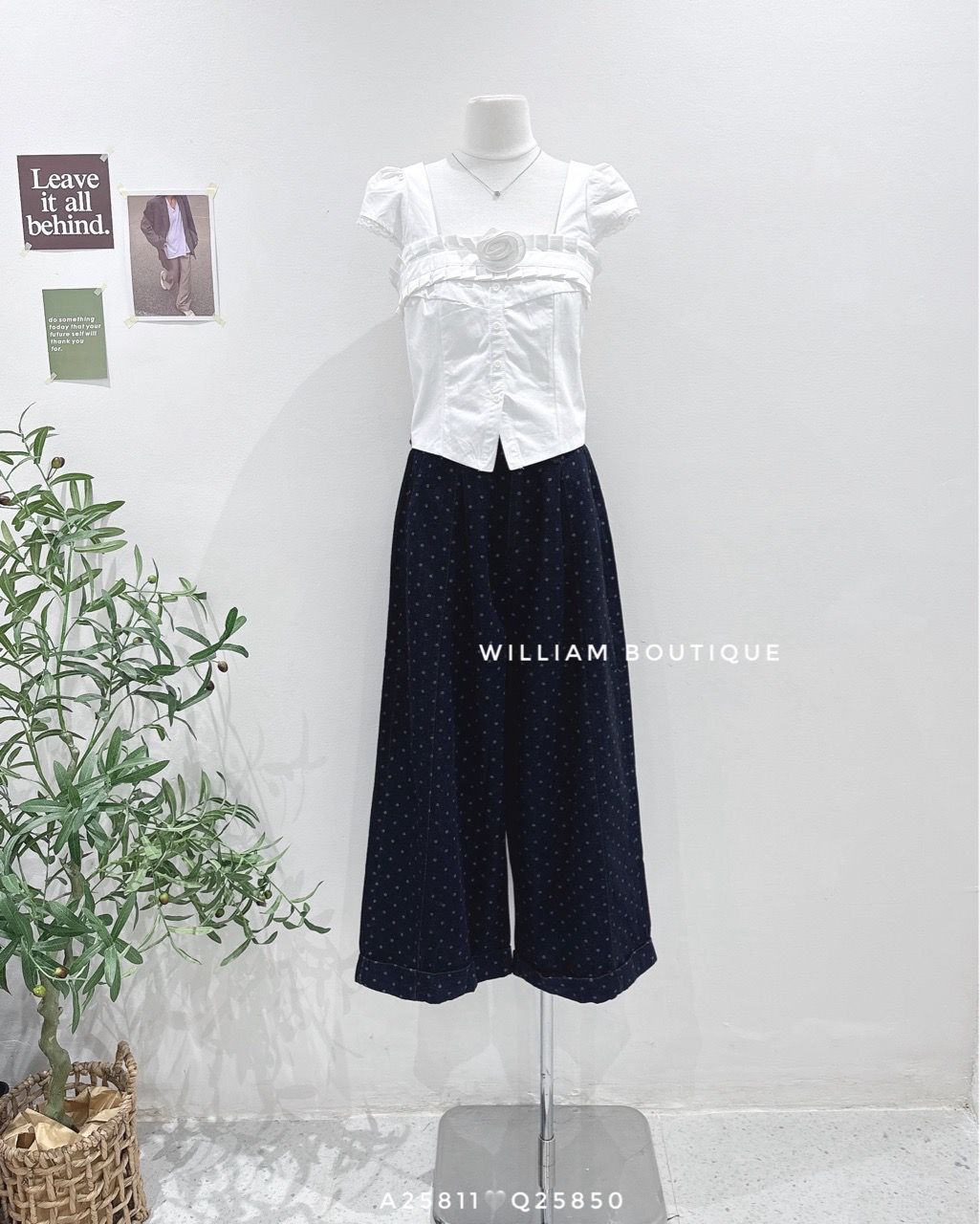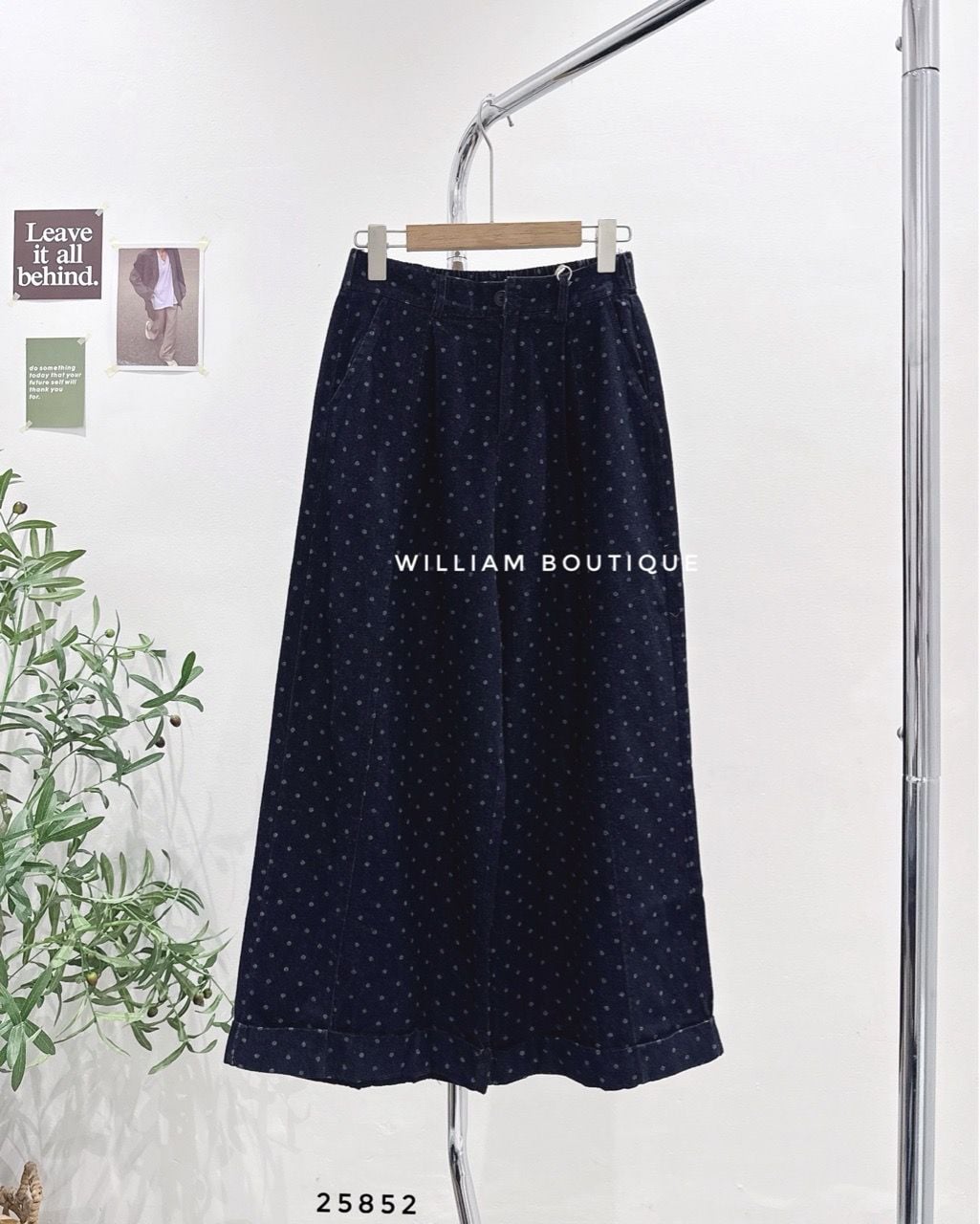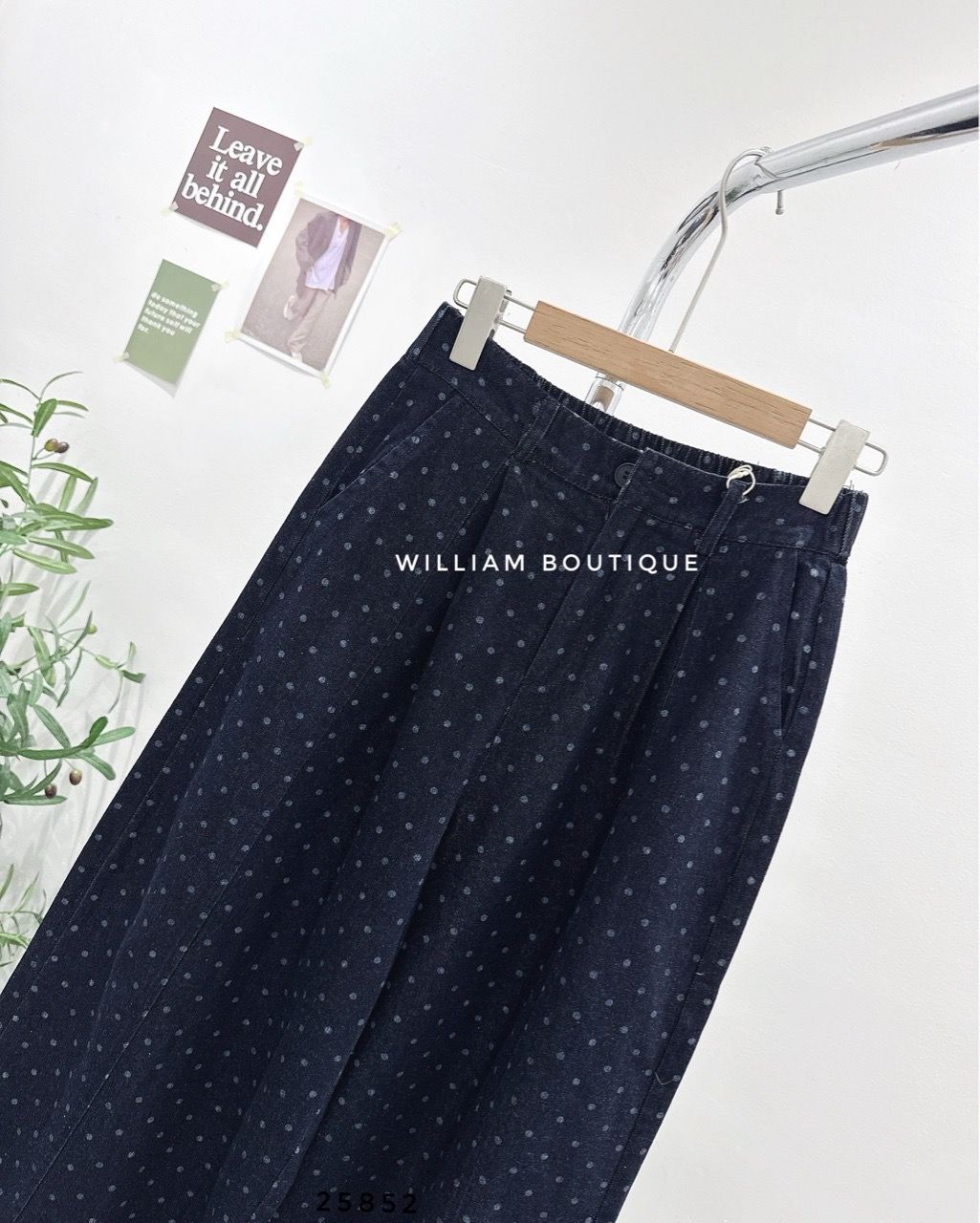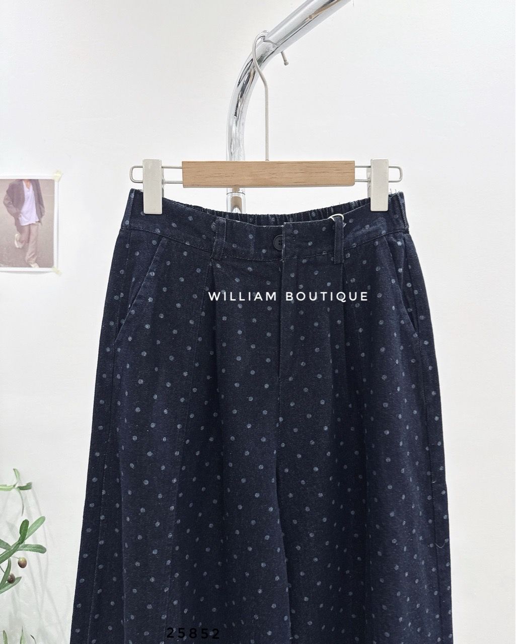 Quần jean ống rộng chấm bi 9016
