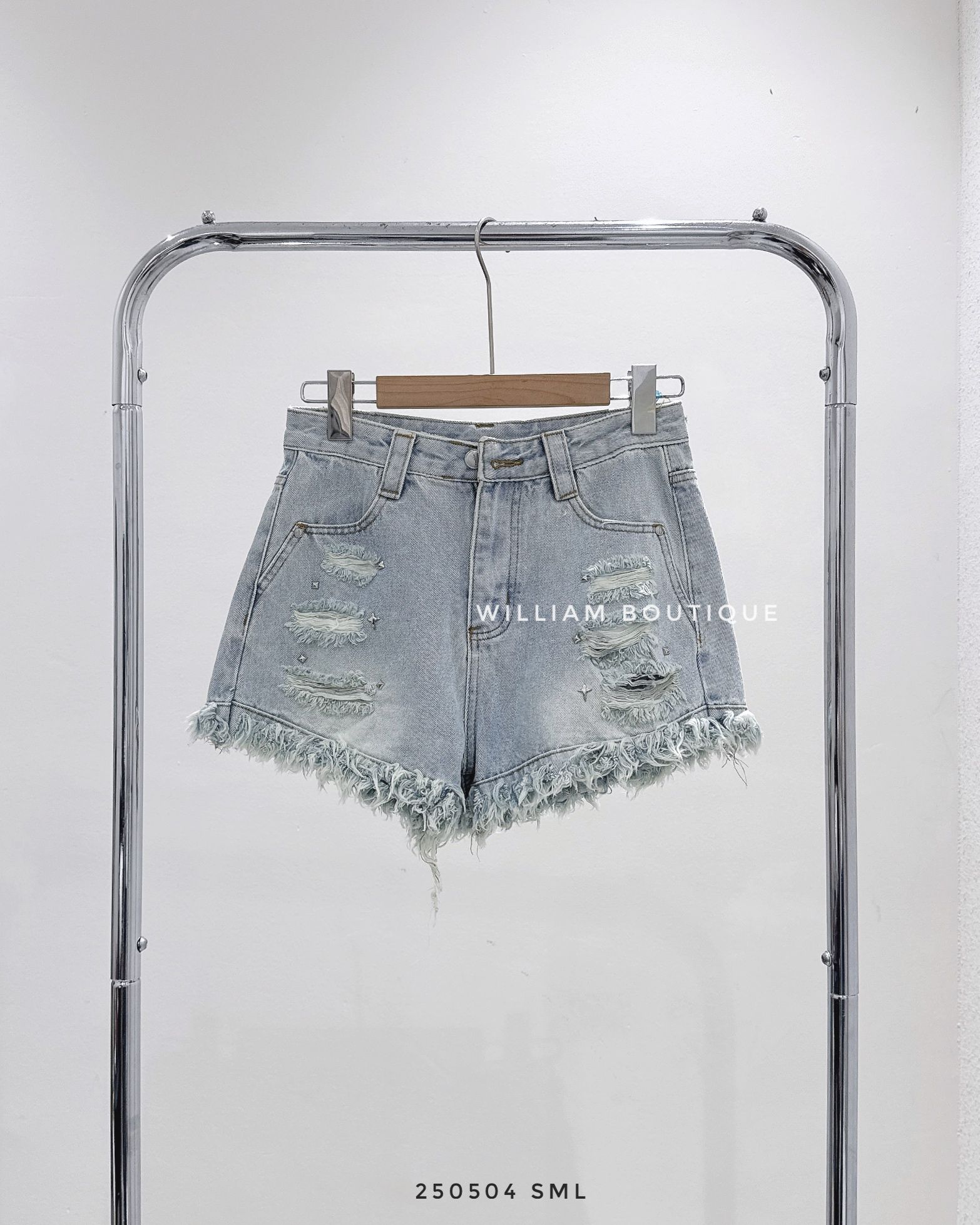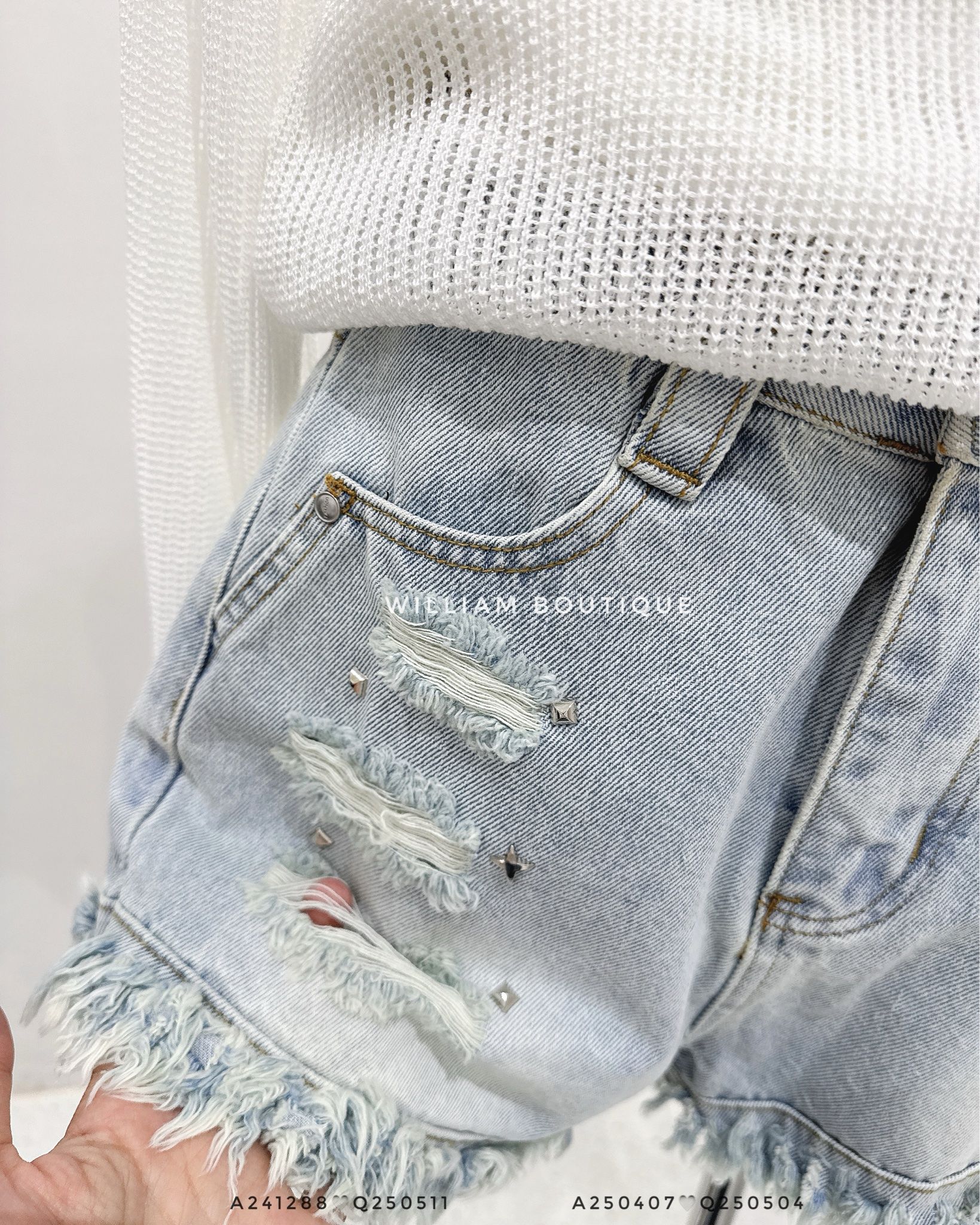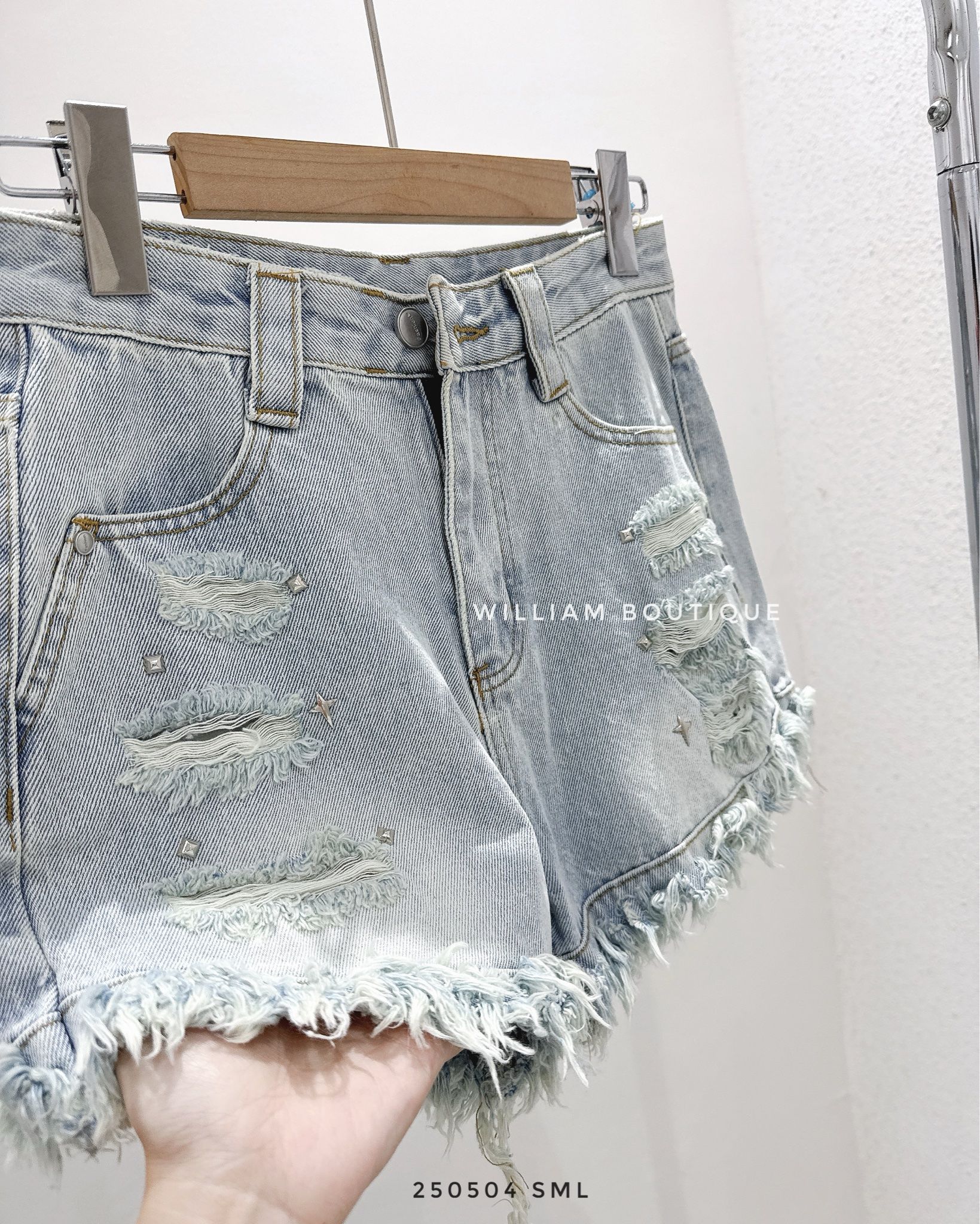 Quần short jean rách đính hạt 60036