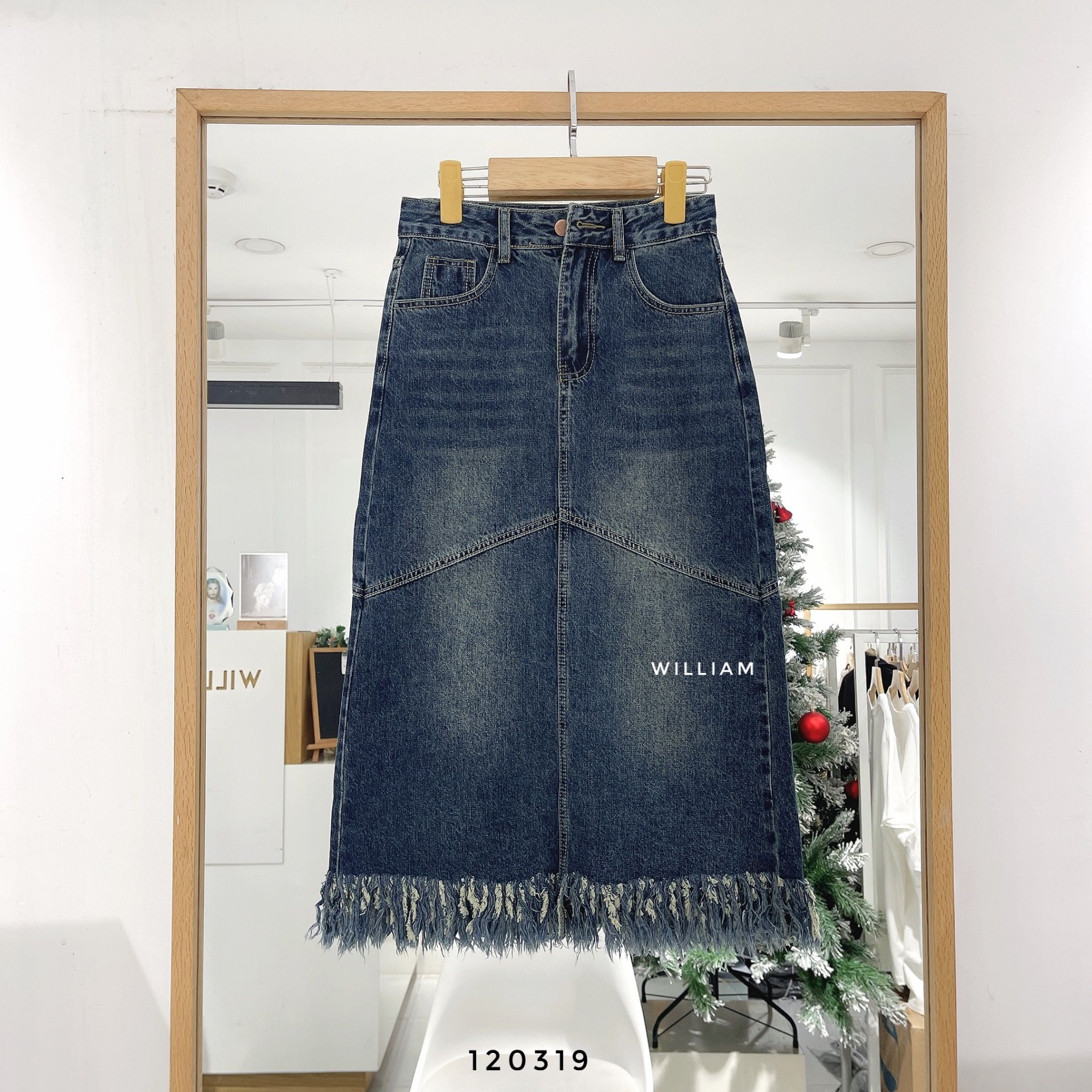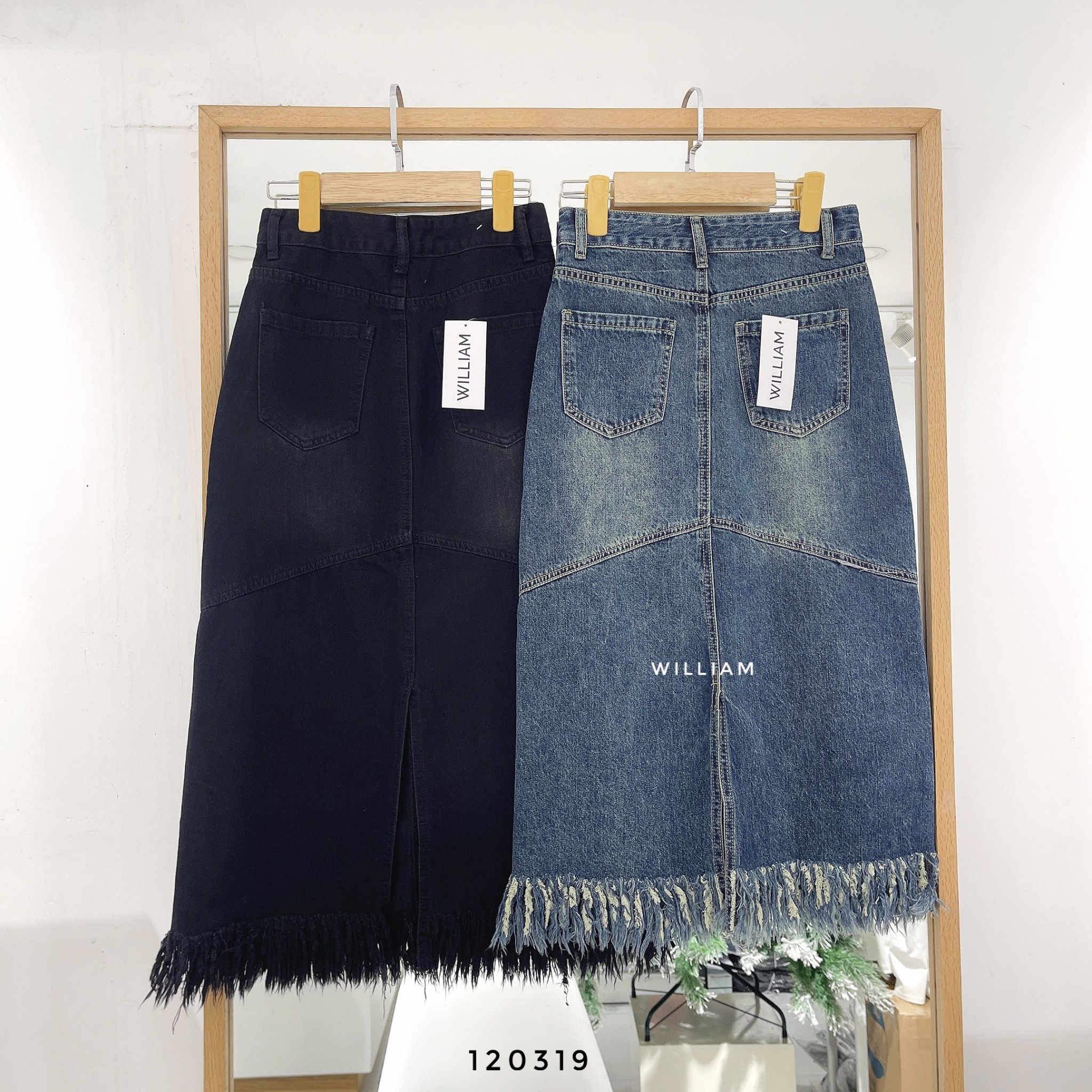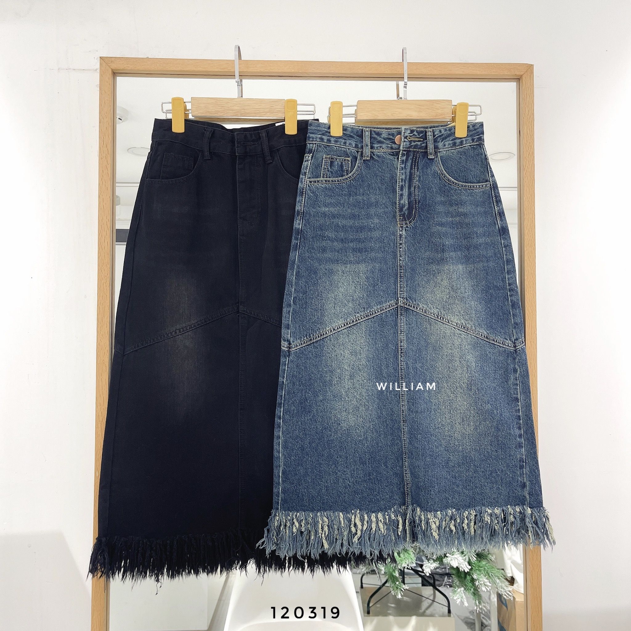 Váy jean midi lai rách 6305